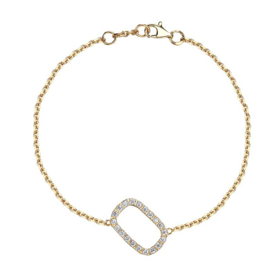 Браслет с 20 бриллиантами природными, 0.47 карат, огранка круг 57 граней, цвет 4, чистота 5, тип огранки А; Желтое золото 585 пробы.