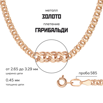 Московский Цепевязальный Завод - современный взгляд на вековое наследие цепевязания: неизменно высокое качество, технологичность и надежное российское производство. «Гарибальди» — объемное якорное плетение с парными круглыми звеньями, считается высокопрочным и одним из самых надежных. Плетение названо в честь супругов Гарибальди, героев освободительного движения Италии, которые всегда были вместе и разделяли взгляды друг друга. Бренд изделия может отличаться от заявленного в описании. В этом случае украшение под другим брендом по своим качественным и потребительским характеристикам ничем не уступает указанному в описании. Фактический завод-производитель указан на бирке каждого изделия.