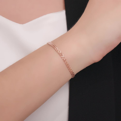 Браслет Розовое золото 585 пробы. БРАСЛЕТ ОБЛЕГЧЕННЫЙ. ТРЕБУЕТ БЕРЕЖНОГО ОБРАЩЕНИЯ. Украшение произведено по итальянской технологии изготовления облегченных (пустотелых) ювелирных изделий. Оно требует аккуратного и бережного обращения. Снимайте украшение, когда выполняете работу по дому, занимаетесь спортом, принимаете душ или ванну, посещаете сауну, бассейн, а также перед сном. Избегайте жестких касаний ювелирного изделия с твёрдыми поверхностями и предметами.