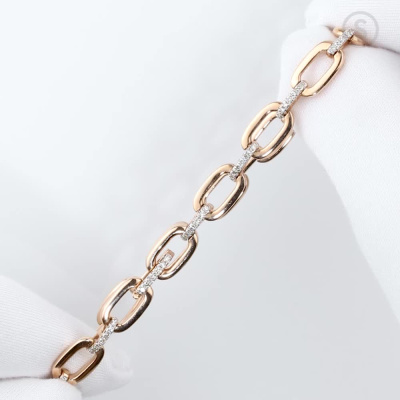 Браслет с 91 бриллиантом природным, 0.3 карат, огранка круг 17 граней, цвет 2, чистота 3, тип огранки Б; Розовое золото 585 пробы.