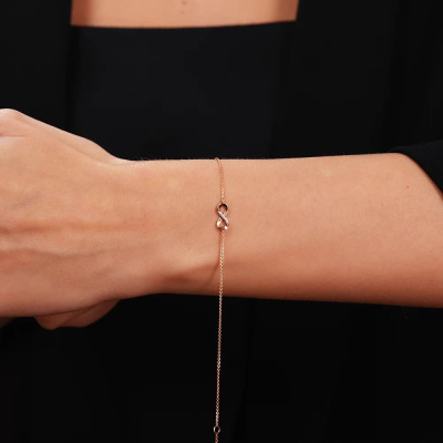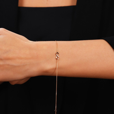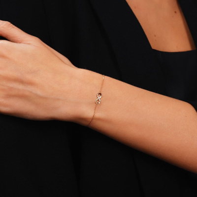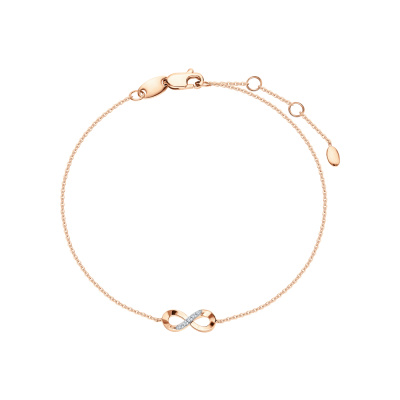Браслет с 5 бриллиантами природными, 0.01 карат, огранка круг 57 граней, цвет 3, чистота 6, тип огранки А; Розовое золото 585 пробы.