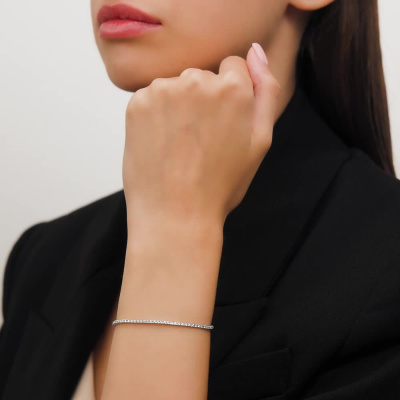 Браслет с 89 бриллиантами природными, 0.85 карат, огранка круг 57 граней, цвет 3, чистота 6, тип огранки А; Белое золото 585 пробы.