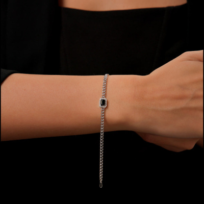 Браслет с 20 бриллиантами природными, 0.08 карат, огранка круг 17 граней, цвет 2, чистота 2, тип огранки А; 1 сапфиром природным, 0.61 карат, цвет 2, чистота 2, тип огранки Б; Белое золото 585 пробы.