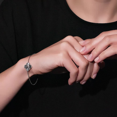 Браслет с 1 бриллиантом природным, 0.004 карат, огранка круг 17 граней, цвет 2, чистота 2, тип огранки А; Серебро 925 пробы.