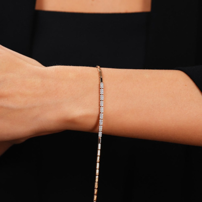 Браслет с 54 бриллиантами природными, 0.42 карат, огранка круг 57 граней, цвет 3, чистота 6, тип огранки А; Розовое золото 585 пробы.