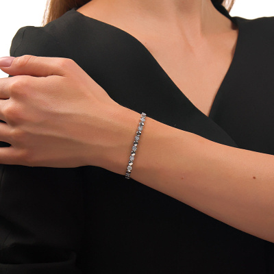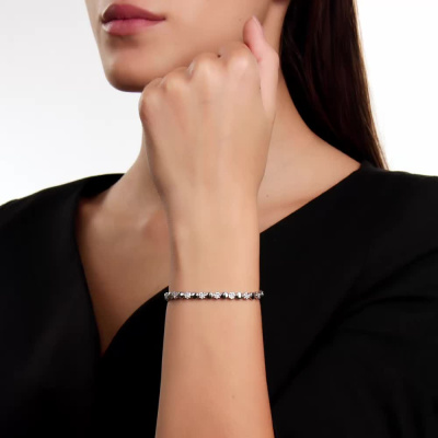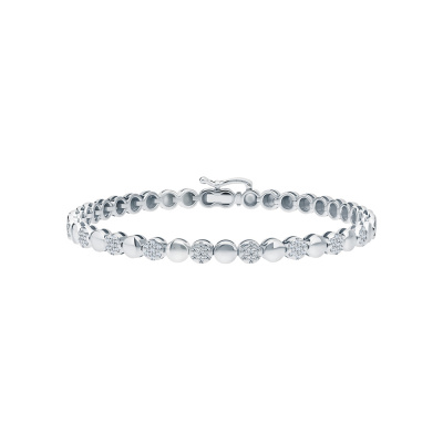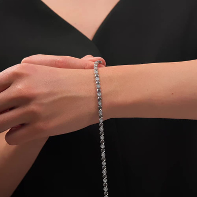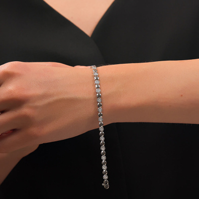 Браслет с 19 бриллиантами природными, 0.13 карат, огранка круг 57 граней, цвет 4, чистота 6, тип огранки А; 114 бриллиантами природными, 0.53 карат, огранка круг 57 граней, цвет 4, чистота 6, тип огранки А; Белое золото 585 пробы.