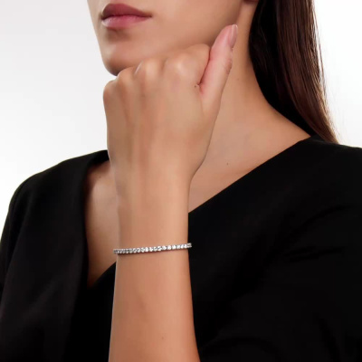 Браслет с 53 бриллиантами природными, 5.56 карат, огранка круг 57 граней, цвет 3, чистота 6, тип огранки А; Белое золото 585 пробы.