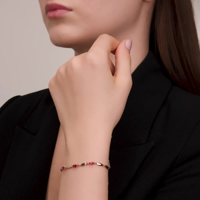 Браслет с 3 рубинами синтетическими, 0.7 карат, тип огранки Б; Розовое золото 585 пробы.