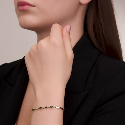 Браслет с 3 гидротермальными изумрудами, 0.56 карат, тип огранки Б; Розовое золото 585 пробы.