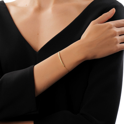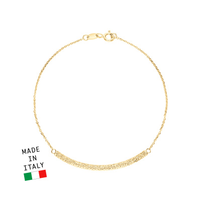 Алмазная огранка – это распространённый в ювелирном деле вид обработки драгоценного металла. Рисунок наносится на поверхность изделия при помощи алмазных резцов, которые придают металлу оригинальную форму. Изысканный и лаконичный дизайн браслета из Италии подойдет для любого образа.