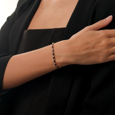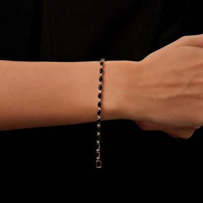 Браслет с 21 бриллиантом природным, 0.17 карат, огранка круг 17 граней, цвет 2, чистота 2, тип огранки А; 21 сапфиром природным, 5.45 карат, цвет 2, чистота 2, тип огранки Б; Розовое золото 585 пробы.