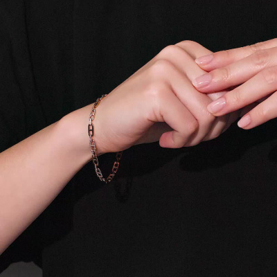 Браслет с 205 бриллиантами природными, 0.31 карат, огранка круг 57 граней, цвет 4, чистота 5, тип огранки А; Розовое золото 585 пробы.