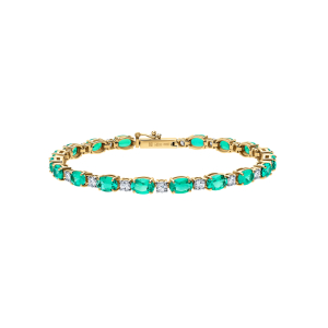 Золотой браслет с бриллиантами выращенными и изумрудами выращенными