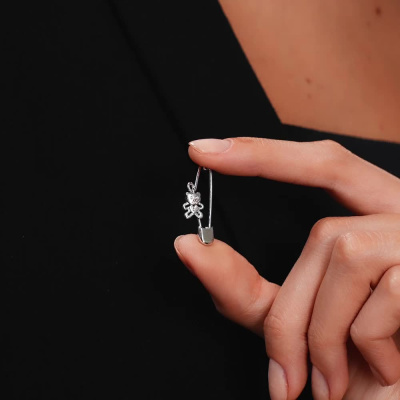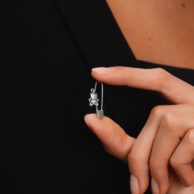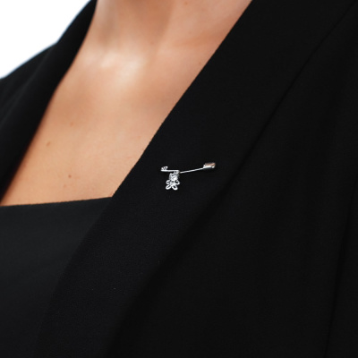 Брошь с 1 бриллиантом природным, 0.002 карат, огранка круг 17 граней, цвет 3, чистота 3, тип огранки Б; Серебро 925 пробы.