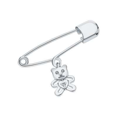 Брошь с 1 бриллиантом природным, 0.003 карат, огранка круг 17 граней, цвет 2, чистота 3, тип огранки А; Серебро 925 пробы.