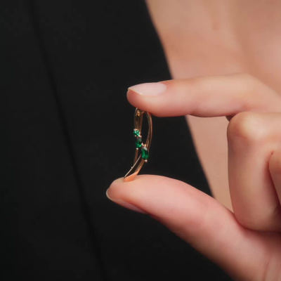 Брошь с 1 гидротермальным изумрудом, 0.12 карат; 1 гидротермальным изумрудом, 0.07 карат; 1 гидротермальным изумрудом, 0.03 карат; Розовое золото 585 пробы.