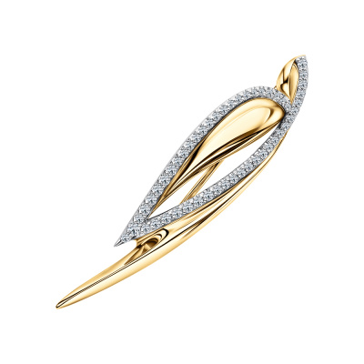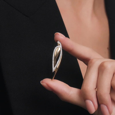 Брошь с 1 бриллиантом природным, 0.01 карат, огранка круг 57 граней, цвет 3, чистота 6, тип огранки А; 12 бриллиантами природными, 0.09 карат, огранка круг 57 граней, цвет 3, чистота 6, тип огранки А; 21 бриллиантом природным, 0.09 карат, огранка круг 57 граней, цвет 3, чистота 6, тип огранки А; 10 бриллиантами природными, 0.03 карат, огранка круг 57 граней, цвет 3, чистота 6, тип огранки А; 6 бриллиантами природными, 0.01 карат, огранка круг 57 граней, цвет 3, чистота 6, тип огранки А; Желтое золото 585 пробы.
