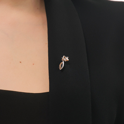 Брошь с 1 бриллиантом природным, 0.01 карат, огранка круг 57 граней, цвет 4, чистота 5, тип огранки А; 7 бриллиантами природными, 0.03 карат, огранка круг 17 граней, цвет 2, чистота 2, тип огранки А; Розовое золото 585 пробы.