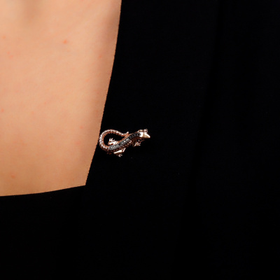 Золотая брошь с бриллиантами чёрными природными