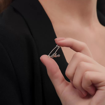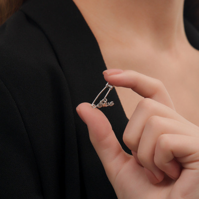 Брошь с 1 бриллиантом природным, 0.003 карат, огранка круг 17 граней, цвет 3, чистота 3, тип огранки Б; Серебро 925 пробы.