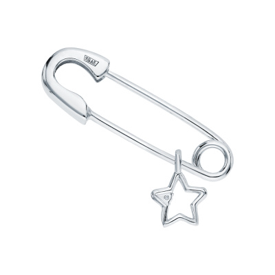Брошь с 1 бриллиантом природным, 0.004 карат, огранка круг 17 граней, цвет 3, чистота 3, тип огранки Б; Серебро 925 пробы.