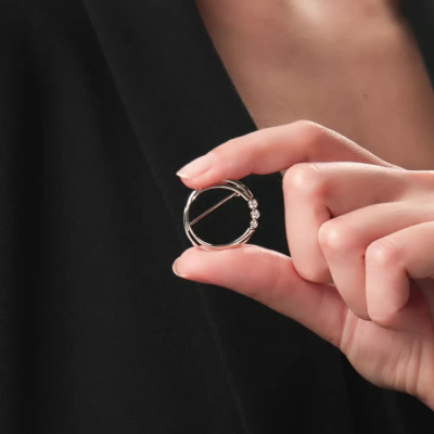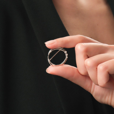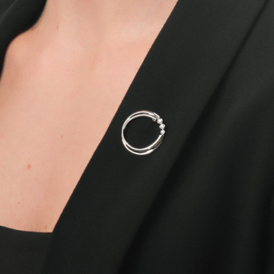 Брошь с 2 бриллиантами природными, 0.06 карат, огранка круг 57 граней, цвет 3, чистота 6; 1 бриллиантом природным, 0.01 карат, огранка круг 57 граней, цвет 3, чистота 6; Белое золото 585 пробы.