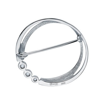 Брошь с 2 бриллиантами природными, 0.05 карат, огранка круг 57 граней, цвет 3, чистота 6; 1 бриллиантом природным, 0.01 карат, огранка круг 57 граней, цвет 3, чистота 6; Белое золото 585 пробы.