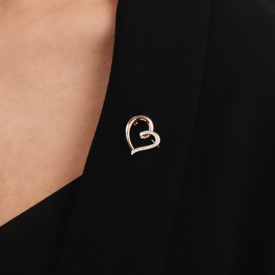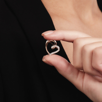 Брошь с 22 бриллиантами природными, 0.07 карат, огранка круг 17 граней, цвет 2, чистота 2; Розовое золото 585 пробы.