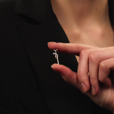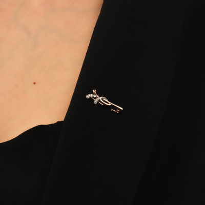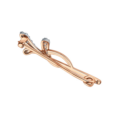 Брошь с 16 бриллиантами природными, 0.07 карат, огранка круг 17 граней, цвет 2, чистота 2; Розовое золото 585 пробы.