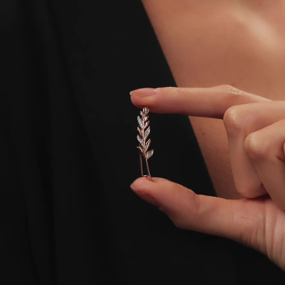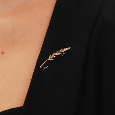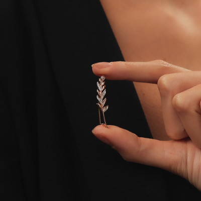 Брошь с 1 бриллиантом природным, 0.008 карат, огранка круг 17 граней, цвет 2, чистота 2, тип огранки Б; 6 бриллиантами природными, 0.02 карат, огранка круг 17 граней, цвет 2, чистота 2, тип огранки А; 8 бриллиантами природными, 0.02 карат, огранка круг 17 граней, цвет 2, чистота 2, тип огранки А; Розовое золото 585 пробы.