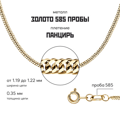 Московский Цепевязальный Завод - современный взгляд на вековое наследие цепевязания: неизменно высокое качество, технологичность и надежное российское производство. Панцирное плетение пользуется большой популярностью при изготовлении цепочек. Если в якорном плетении цепей звенья располагались перпендикулярно друг к другу, то в панцирном – в одной плоскости. Внешне способ размещения звеньев напоминает кольчугу-панцирь, от этого и пошло название данного способа плетения цепи. Такие украшения также отличаются высокой прочностью. Бренд изделия может отличаться от заявленного в описании. В этом случае украшение под другим брендом по своим качественным и потребительским характеристикам ничем не уступает указанному в описании. Фактический завод-производитель указан на бирке каждого изделия.