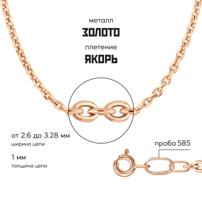 Московский Цепевязальный Завод - современный взгляд на вековое наследие цепевязания: неизменно высокое качество, технологичность и надежное российское производство. Якорное плетение - настолько надежное, что можно "вешать якорь". Звенья расположены под прямым углом друг к другу, от чего цепь получается объемной и крепкой. Плетение универсально, подходит и женщинам, и мужчинам. Классическая якорная цепь состоит из звеньев продолговатой формы с закругленными концами. Для усиления блеска края обрабатывают алмазной гранью. Бренд изделия может отличаться от заявленного в описании. В этом случае украшение под другим брендом по своим качественным и потребительским характеристикам ничем не уступает указанному в описании. Фактический завод-производитель указан на бирке каждого изделия.