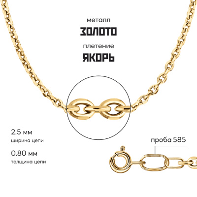 Московский Цепевязальный Завод - современный взгляд на вековое наследие цепевязания: неизменно высокое качество, технологичность и надежное российское производство. Якорное плетение - настолько надежное, что можно "вешать якорь". Звенья расположены под прямым углом друг к другу, от чего цепь получается объемной и крепкой. Плетение универсально, подходит и женщинам, и мужчинам. Классическая якорная цепь состоит из звеньев продолговатой формы с закругленными концами. Для усиления блеска края обрабатывают алмазной гранью. Бренд изделия может отличаться от заявленного в описании. В этом случае украшение под другим брендом по своим качественным и потребительским характеристикам ничем не уступает указанному в описании. Фактический завод-производитель указан на бирке каждого изделия.