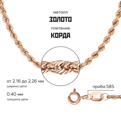 Московский Цепевязальный Завод - современный взгляд на вековое наследие цепевязания: неизменно высокое качество, технологичность и надежное российское производство. Цепи плетения «Корда» имеют особенный, сложный рисунок. Кольца цепочки, переплетаясь между собой, образуют красивую волну и напоминают канат. На солнце украшение приобретает неповторимый благородный блеск. Цепи, сплетенные по технологии «Корда», – это универсальные украшения. Их можно носить как отдельно, так и в сочетании с крестами или подвесками. Бренд изделия может отличаться от заявленного в описании. В этом случае украшение под другим брендом по своим качественным и потребительским характеристикам ничем не уступает указанному в описании. Фактический завод-производитель указан на бирке каждого изделия.