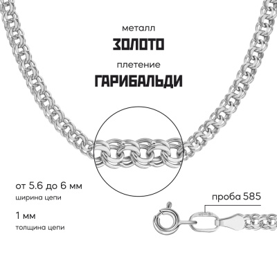 Московский Цепевязальный Завод - современный взгляд на вековое наследие цепевязания: неизменно высокое качество, технологичность и надежное российское производство. «Гарибальди» — объемное якорное плетение с парными круглыми звеньями, считается высокопрочным и одним из самых надежных. Плетение названо в честь супругов Гарибальди, героев освободительного движения Италии, которые всегда были вместе и разделяли взгляды друг друга. Бренд изделия может отличаться от заявленного в описании. В этом случае украшение под другим брендом по своим качественным и потребительским характеристикам ничем не уступает указанному в описании. Фактический завод-производитель указан на бирке каждого изделия.