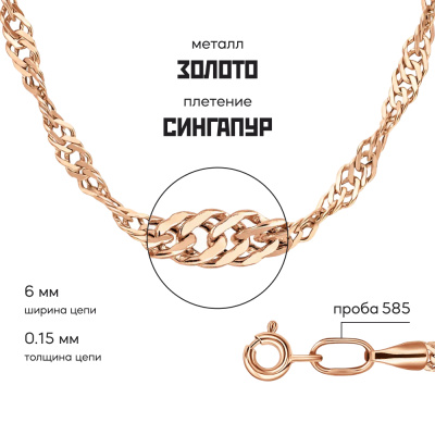 Московский Цепевязальный Завод - современный взгляд на вековое наследие цепевязания: неизменно высокое качество, технологичность и надежное российское производство. "Сингапур" - плетение на основе двойного панцирного плетения. Звенья в цепи соединены в сложную спиралевидную структуру, обеспечивая потрясающий блеск от солнечных лучей под разным углом. Плетение отличается утонченностью, нежностью и легкостью. Украшения превосходно дополнят и вечерний наряд, и повседневный образ. Бренд изделия может отличаться от заявленного в описании. В этом случае украшение под другим брендом по своим качественным и потребительским характеристикам ничем не уступает указанному в описании. Фактический завод-производитель указан на бирке каждого изделия.