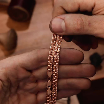 Цепь Розовое золото 585 пробы. ЦЕПЬ ОБЛЕГЧЕННАЯ. ТРЕБУЕТ БЕРЕЖНОГО ОБРАЩЕНИЯ. Украшение произведено по итальянской технологии изготовления облегченных (пустотелых) ювелирных изделий. Оно требует аккуратного и бережного обращения. Снимайте украшение, когда выполняете работу по дому, занимаетесь спортом, принимаете душ или ванну, посещаете сауну, бассейн, а также перед сном. Избегайте жестких касаний ювелирного изделия с твердыми поверхностями и предметами.