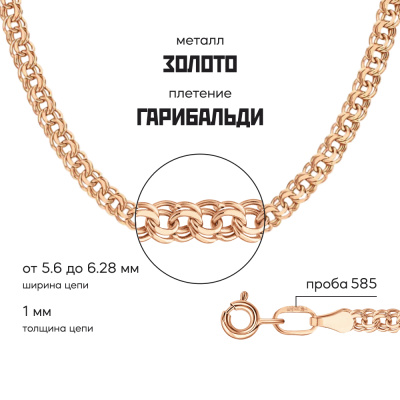Московский Цепевязальный Завод - современный взгляд на вековое наследие цепевязания: неизменно высокое качество, технологичность и надежное российское производство. «Гарибальди» — объемное якорное плетение с парными круглыми звеньями, считается высокопрочным и одним из самых надежных. Плетение названо в честь супругов Гарибальди, героев освободительного движения Италии, которые всегда были вместе и разделяли взгляды друг друга. Бренд изделия может отличаться от заявленного в описании. В этом случае украшение под другим брендом по своим качественным и потребительским характеристикам ничем не уступает указанному в описании. Фактический завод-производитель указан на бирке каждого изделия.