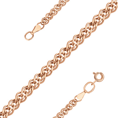 Цепь Розовое золото 585 пробы. ЦЕПЬ ОБЛЕГЧЕННАЯ. ТРЕБУЕТ БЕРЕЖНОГО ОБРАЩЕНИЯ. Украшение произведено по итальянской технологии изготовления облегченных (пустотелых) ювелирных изделий. Оно требует аккуратного и бережного обращения. Снимайте украшение, когда выполняете работу по дому, занимаетесь спортом, принимаете душ или ванну, посещаете сауну, бассейн, а также перед сном. Избегайте жестких касаний ювелирного изделия с твёрдыми поверхностями и предметами.