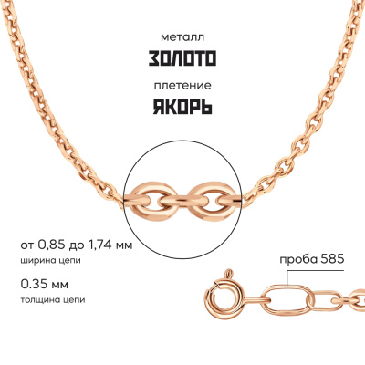 Московский Цепевязальный Завод - современный взгляд на вековое наследие цепевязания: неизменно высокое качество, технологичность и надежное российское производство. Якорное плетение - настолько надежное, что можно "вешать якорь". Звенья расположены под прямым углом друг к другу, от чего цепь получается объемной и крепкой. Плетение универсально, подходит и женщинам, и мужчинам. Классическая якорная цепь состоит из звеньев продолговатой формы с закругленными концами. Для усиления блеска края обрабатывают алмазной гранью. Бренд изделия может отличаться от заявленного в описании. В этом случае украшение под другим брендом по своим качественным и потребительским характеристикам ничем не уступает указанному в описании. Фактический завод-производитель указан на бирке каждого изделия.