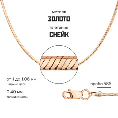 Цепочка с плетением "Снейк" – универсальное украшение, которое подойдет на все случаи жизни. Ювелирный аксессуар напоминает скрученную туго веревку, состоящую из плотно соединенных элементов одной плоскости. Основные компоненты изделия – кольца, замок и звенья. Чередование и определенное расположение элементов создают уникальный вид плетения. ВНИМАНИЕ – из-за конструктивной особенности цепочка плетения снейк подвержена заломам. Обязательно снимайте ее на ночь, при занятии спортом и физических нагрузках. Под крест лучше выбирать другой вид плетения из нашего каталога.