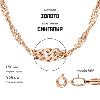 Московский Цепевязальный Завод - современный взгляд на вековое наследие цепевязания: неизменно высокое качество, технологичность и надежное российское производство. "Сингапур" - плетение на основе двойного панцирного плетения. Звенья в цепи соединены в сложную спиралевидную структуру, обеспечивая потрясающий блеск от солнечных лучей под разным углом. Плетение отличается утонченностью, нежностью и легкостью. Украшения превосходно дополнят и вечерний наряд, и повседневный образ. Бренд изделия может отличаться от заявленного в описании. В этом случае украшение под другим брендом по своим качественным и потребительским характеристикам ничем не уступает указанному в описании. Фактический завод-производитель указан на бирке каждого изделия.