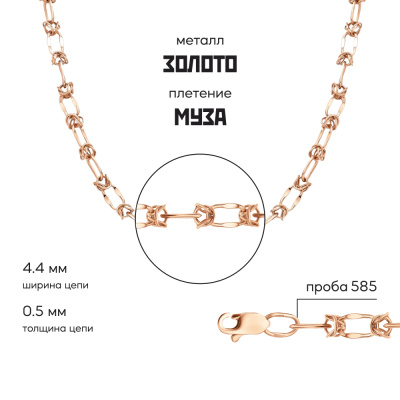 Московский Цепевязальный Завод - современный взгляд на вековое наследие цепевязания: неизменно высокое качество, технологичность и надежное российское производство. Плетение "Муза" сочетает в себе нежность, воздушность и прочность. Состоит из якорных звеньев, соединенных между собой узелками. Производится только ручным способом. Бренд изделия может отличаться от заявленного в описании. В этом случае украшение под другим брендом по своим качественным и потребительским характеристикам ничем не уступает указанному в описании. Фактический завод-производитель указан на бирке каждого изделия.