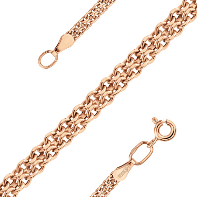 Цепь Розовое золото 585 пробы. ЦЕПЬ ОБЛЕГЧЕННАЯ. ТРЕБУЕТ БЕРЕЖНОГО ОБРАЩЕНИЯ. Украшение произведено по итальянской технологии изготовления облеченных (пустотелых) ювелирных изделий. Оно требует аккуратного и бережного обращения. Снимайте украшение, когда выполняете работу по дому, занимаетесь спортом, принимаете душ или ванну, посещаете сауну, бассейн, а также перед сном. Избегайте жестких касаний ювелирного изделия с твёрдыми поверхностями и предметами.