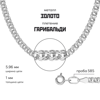 Московский Цепевязальный Завод - современный взгляд на вековое наследие цепевязания: неизменно высокое качество, технологичность и надежное российское производство. «Гарибальди» — объемное якорное плетение с парными круглыми звеньями, считается высокопрочным и одним из самых надежных. Плетение названо в честь супругов Гарибальди, героев освободительного движения Италии, которые всегда были вместе и разделяли взгляды друг друга. Бренд изделия может отличаться от заявленного в описании. В этом случае украшение под другим брендом по своим качественным и потребительским характеристикам ничем не уступает указанному в описании. Фактический завод-производитель указан на бирке каждого изделия.