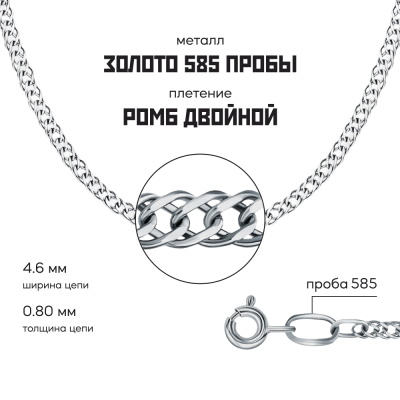 Московский Цепевязальный Завод - современный взгляд на вековое наследие цепевязания: неизменно высокое качество, технологичность и надежное российское производство. "Ромб" - один из самых изысканных типов плетения. За счёт сложной геометрии цепь приобретает необычный объемный узор и выглядит по-настоящему изысканно. Плетение может быть одинарным, двойным или тройным. Украшения с ромбовидным плетением относятся к универсальным. Это классика, которая никогда не выходит из моды. Бренд изделия может отличаться от заявленного в описании. В этом случае украшение под другим брендом по своим качественным и потребительским характеристикам ничем не уступает указанному в описании. Фактический завод-производитель указан на бирке каждого изделия.