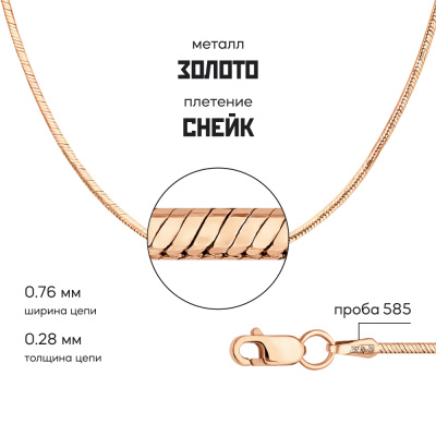 Московский Цепевязальный Завод - современный взгляд на вековое наследие цепевязания: неизменно высокое качество, технологичность и надежное российское производство. Цепь с плетением "Снейк" – универсальное украшение, которое подойдет на все случаи жизни. Визуально напоминает туго скрученную веревку или змеиные чешуйки, плотно подогнанные друг к другу. Это легкое и элегантное ювелирное изделие, которое подходит под любой стиль. С цепями данного типа нужно обращаться особенно аккуратно, так как легко может образоваться залом. Перед сном рекомендуется снимать украшение, чтобы не повредить звенья. Под крест лучше выбирать другой вид плетения из нашего каталога, например «Якорь», «Сингапур», «Ромб двойной». Бренд изделия может отличаться от заявленного в описании. В этом случае украшение под другим брендом по своим качественным и потребительским характеристикам ничем не уступает указанному в описании. Фактический завод-производитель указан на бирке каждого изделия.