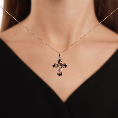 Золотой крестик с сапфирами природными