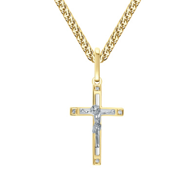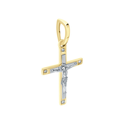 Подвеска с 4 бриллиантами природными, 0.01 карат, огранка круг 17 граней, цвет 2, чистота 2, тип огранки А; Желтое и белое золото 585 пробы.