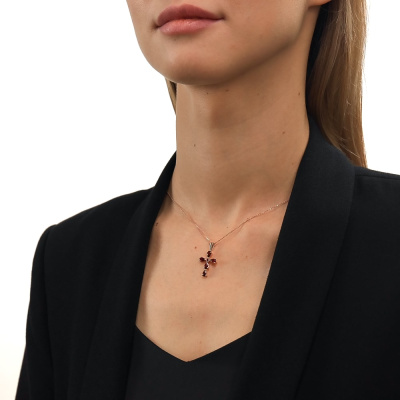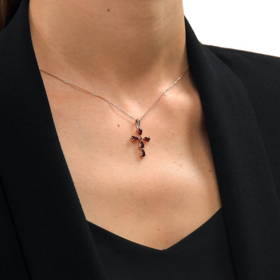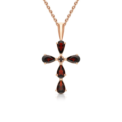 Золотой крест-подвеска с гранатами природными